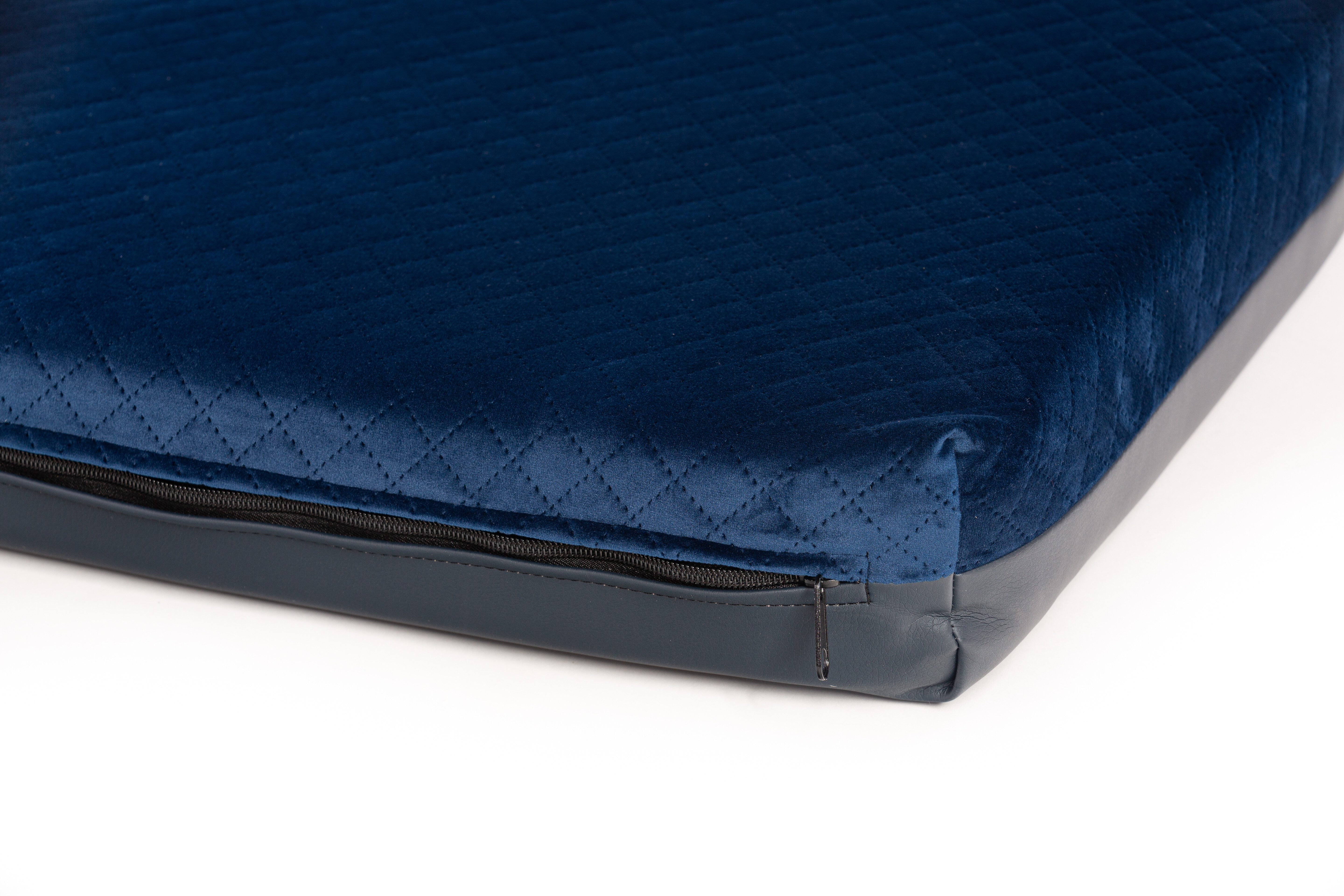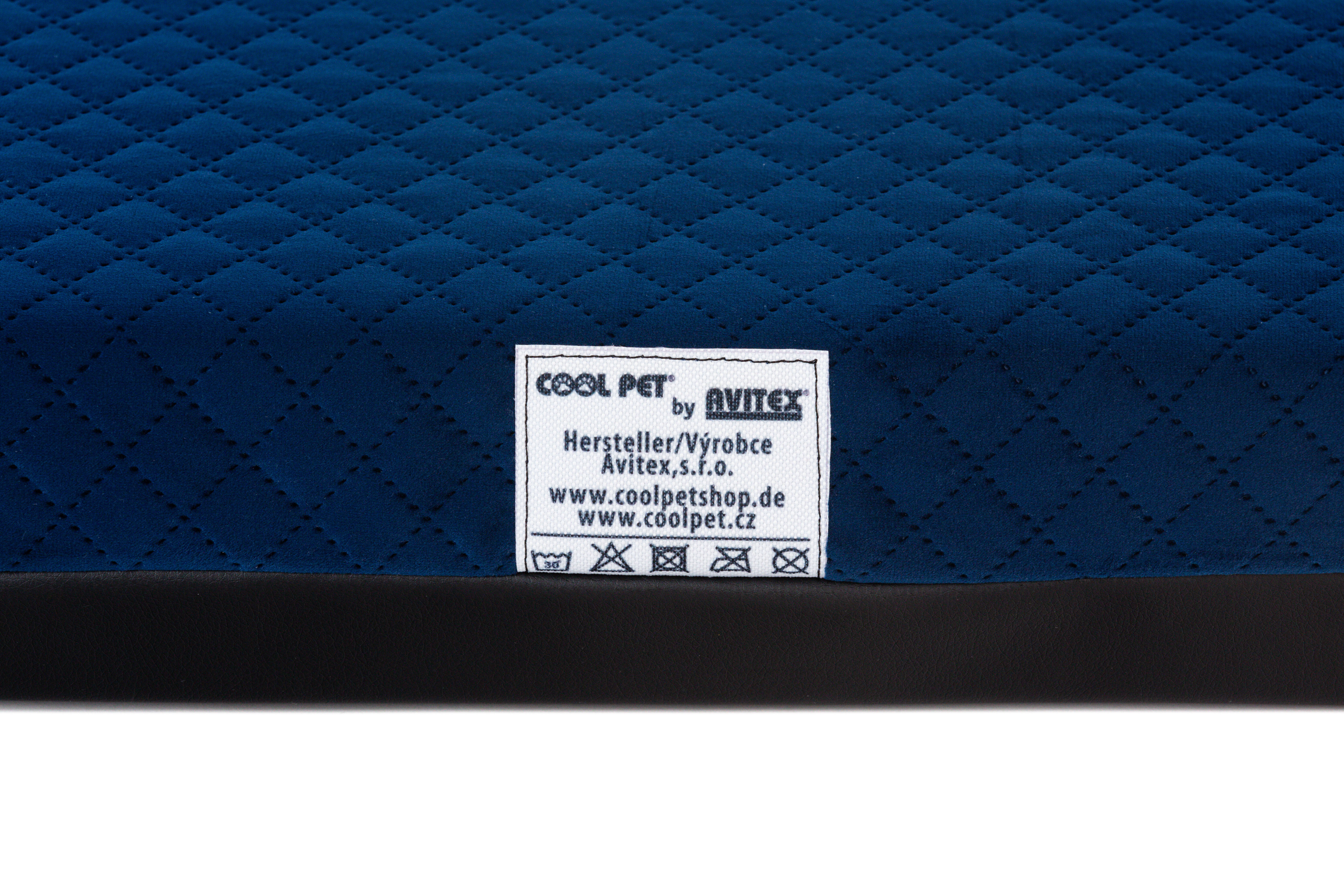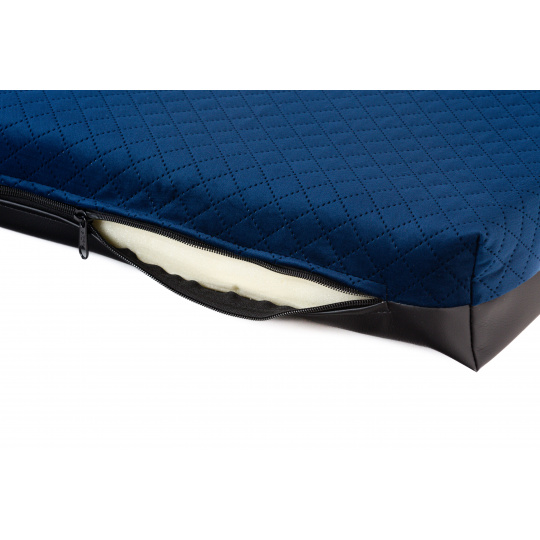 Cuccia ortopedica - velluto trapuntato blu scuro/pelle ecologica nera