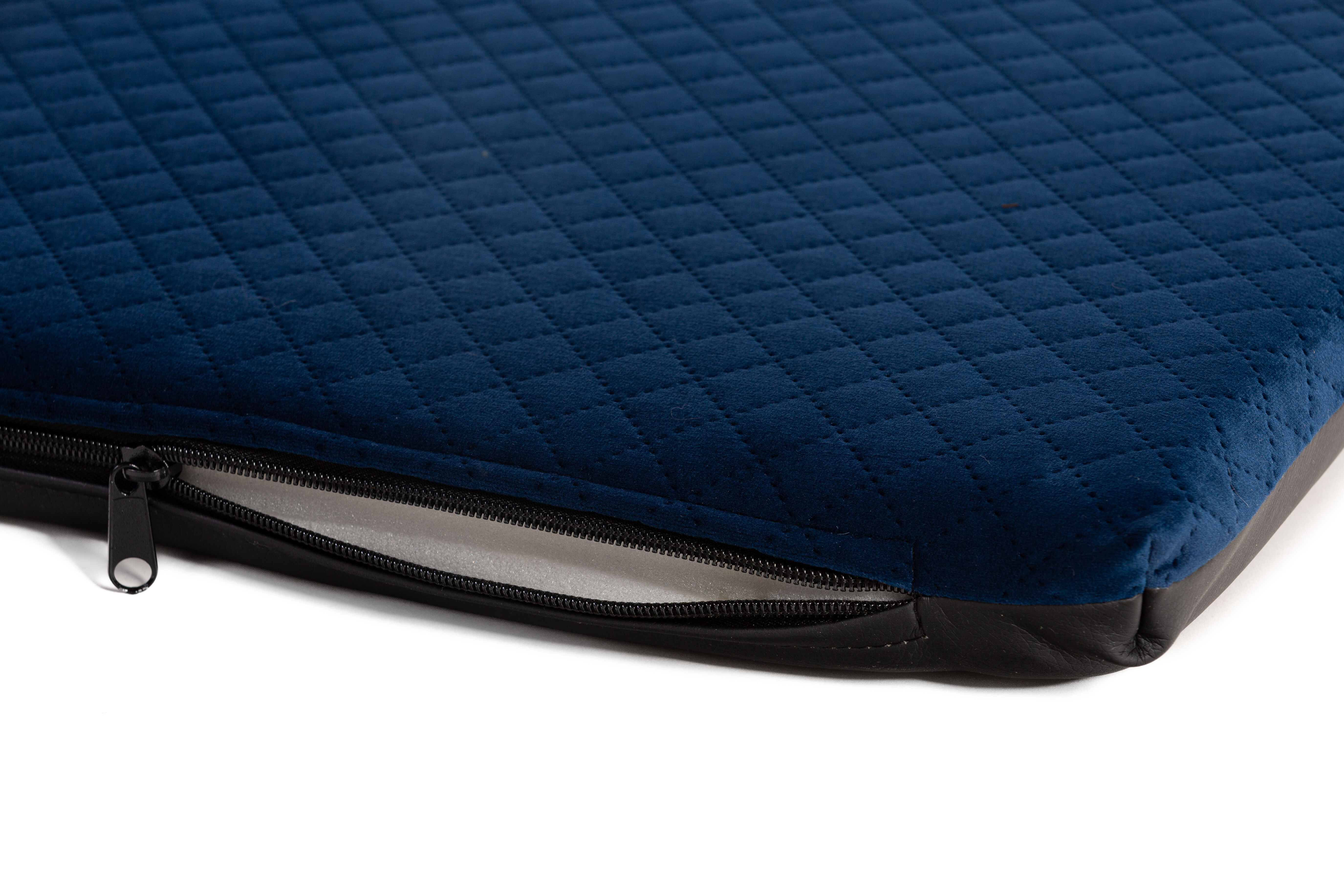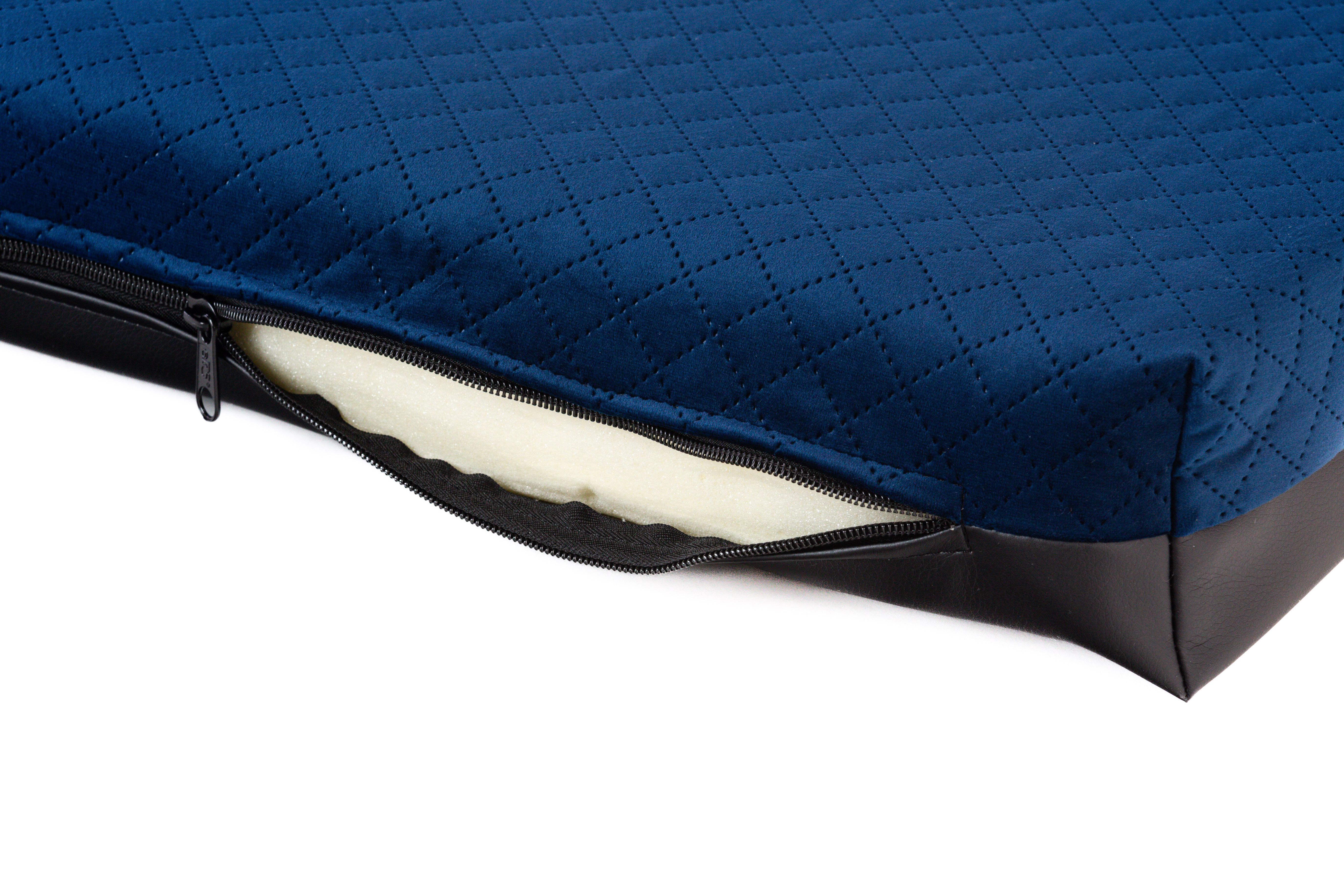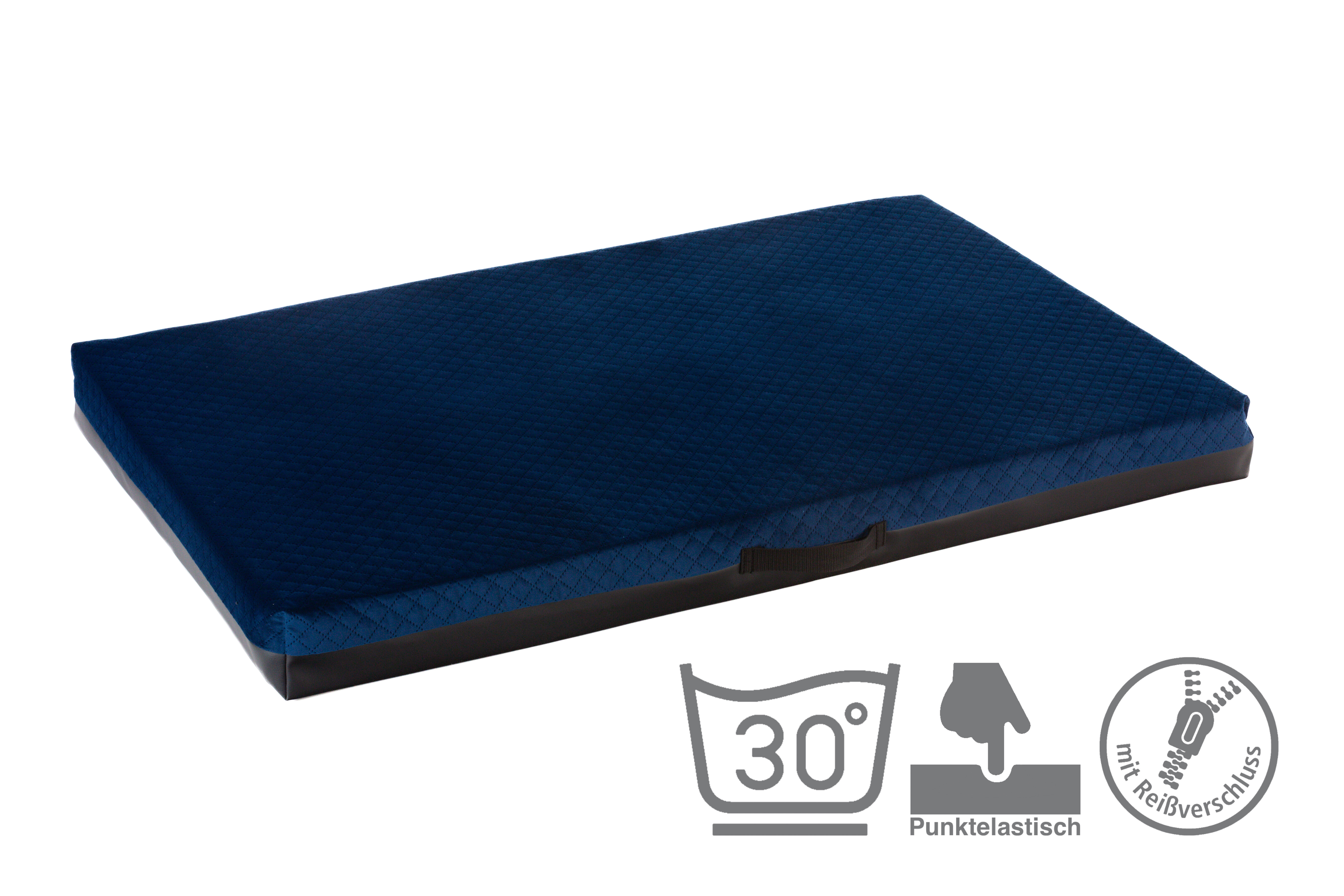 Cuccia ortopedica - velluto trapuntato blu scuro/pelle ecologica nera