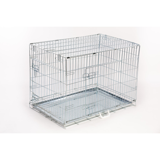 Trasportino o gabbia per cani, ferro zincato argento o vernice a polvere nera, solida.Adatta anche come gabbia domestica occasionale.