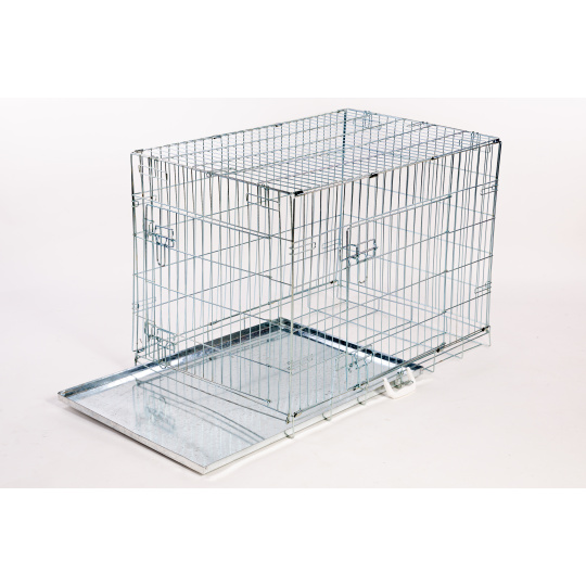 Gabbia di trasporto o esposizione per cani, in acciaio, finitura superficiale: vernice a polvere nera o superficie zincata argento, gabbia solida e stabile.Adatta anche come gabbia domestica occasionale. La gabbia ha 2 ingressi e si piega e trasporta facilmente.