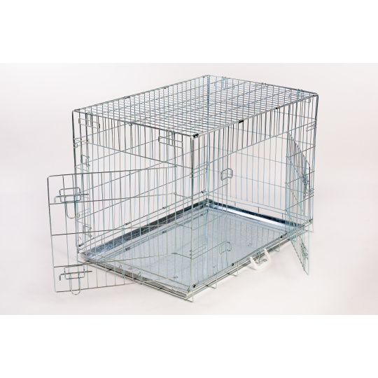 Gabbia da trasporto o da esposizione per cani, in ferro con verniciatura nera, robusta.Adatta anche come gabbia domestica occasionale. La gabbia ha due ingressi e si piega e trasporta facilmente.