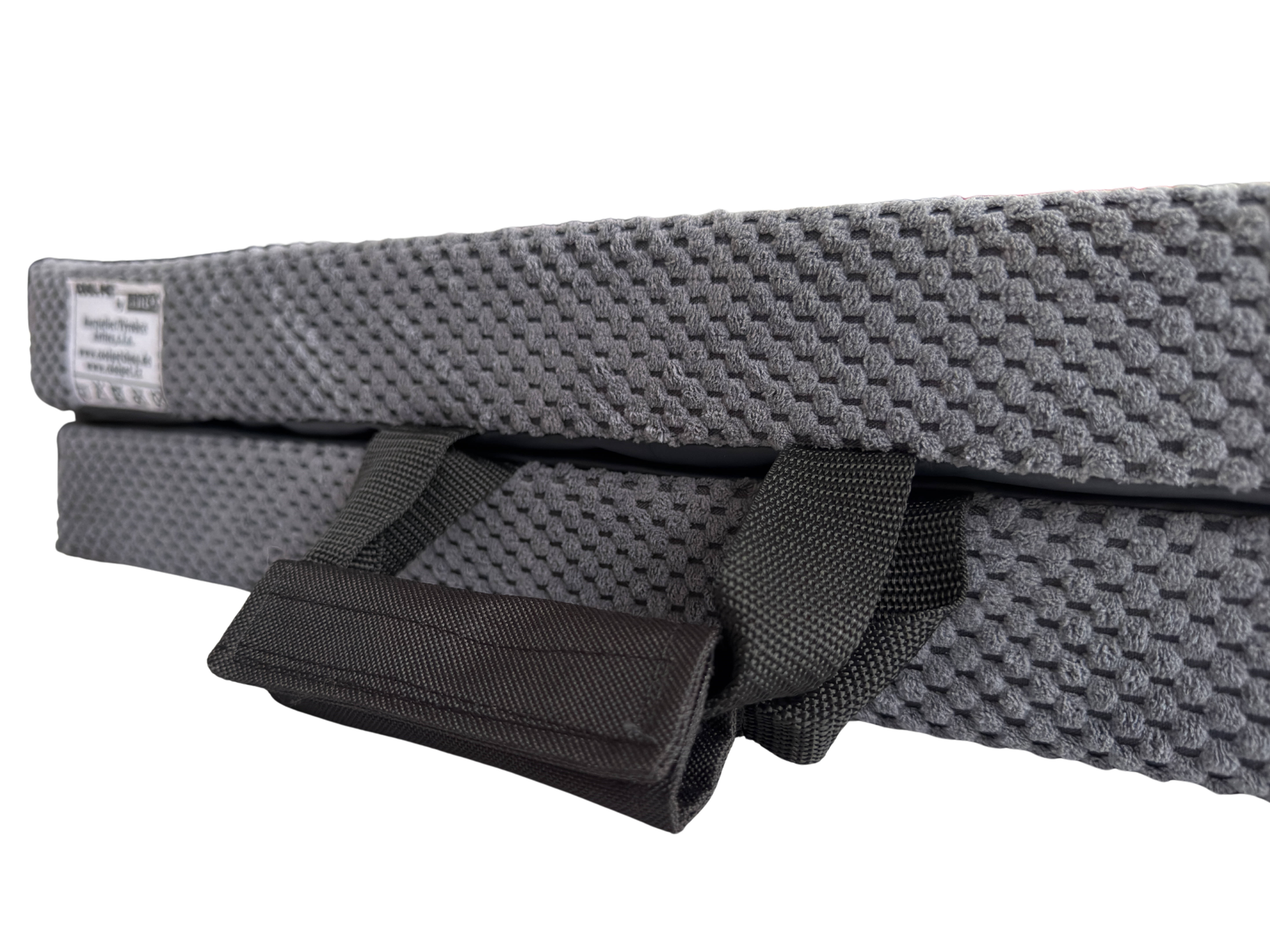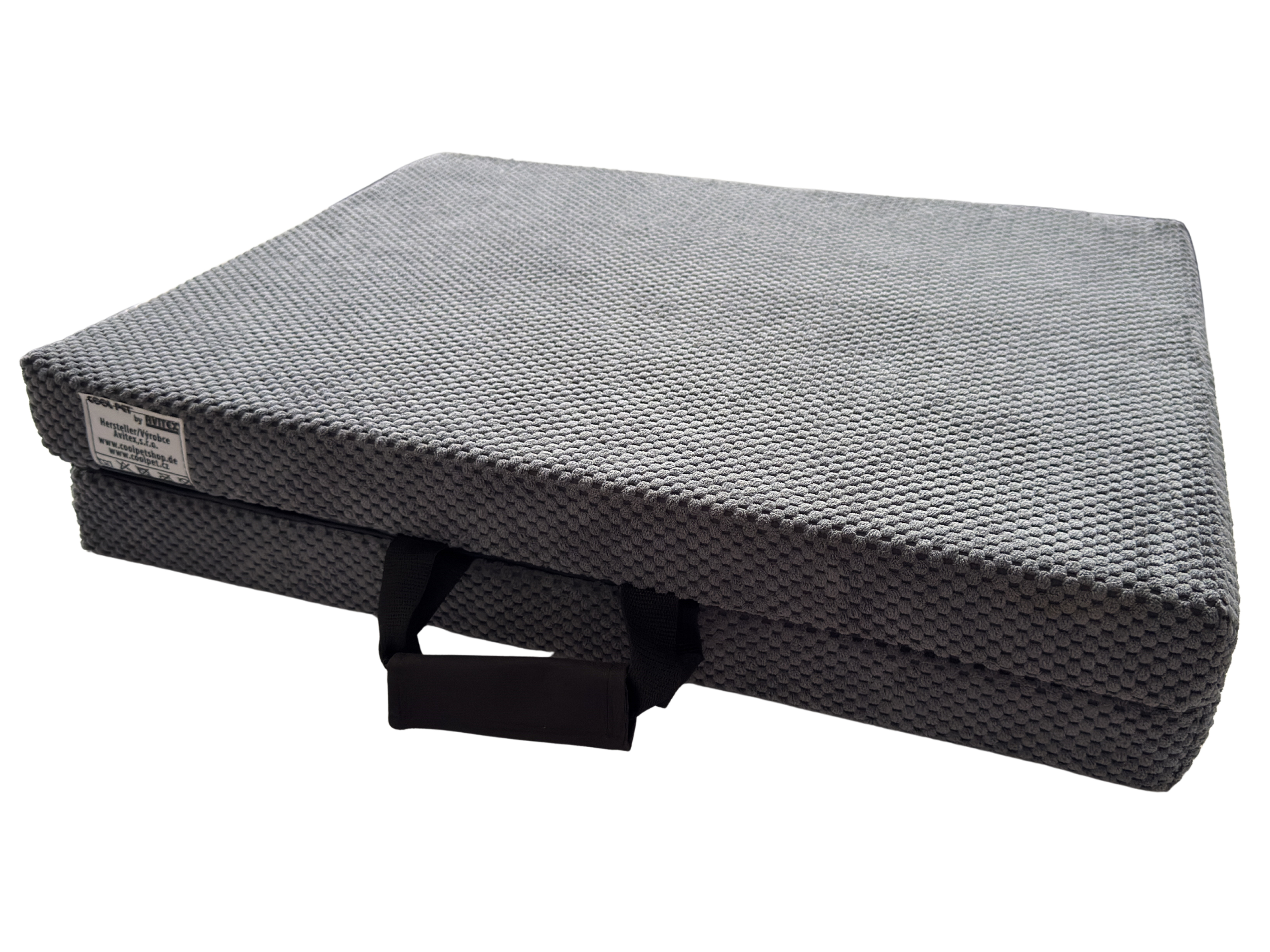 E poiché sappiamo che la vita con i cani è piena di movimento – il materasso si piega semplicemente a metà e grazie al pratico manico portatile lo porterete ovunque. In chat, dalla nonna, in vacanza. Il tuo cane avrà sempre la sua cuccia con sé 🐕