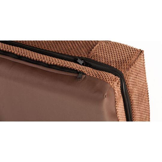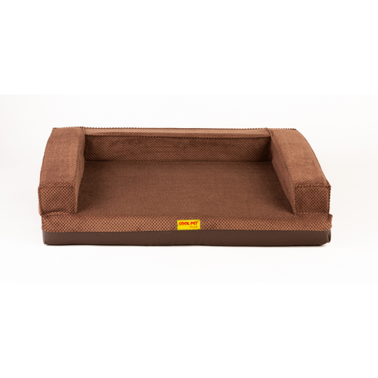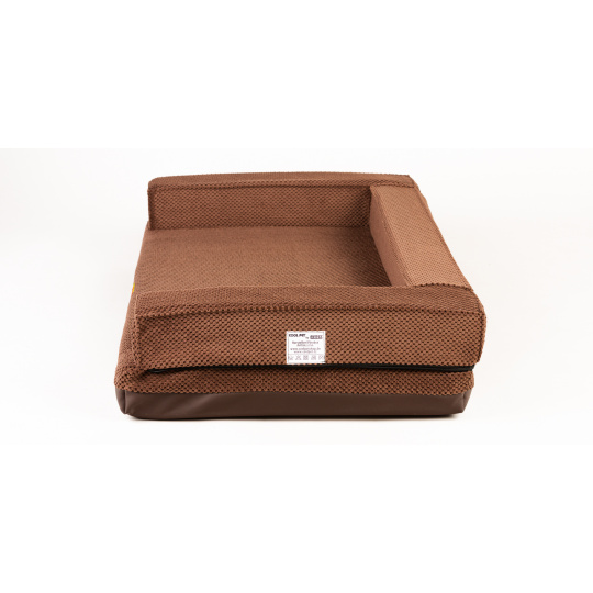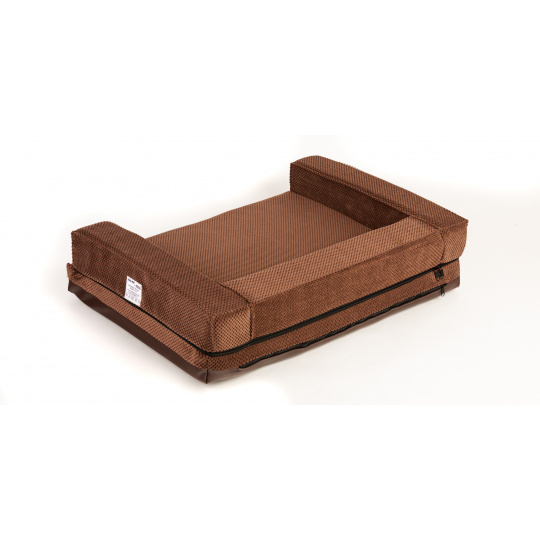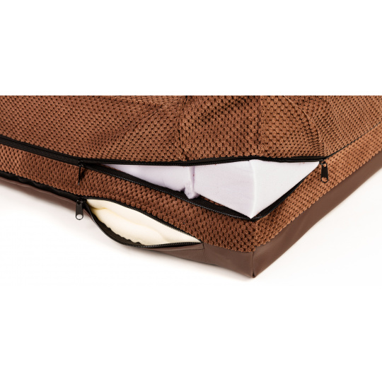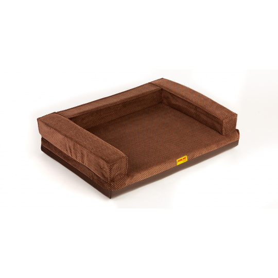 Letto ortopedico, 5 dimensioni, bordo imbottito in schiuma memory alta 10 cm, velluto marrone/pelle ecologica marrone 70x52 cm, dimensione interna 50x42 cm