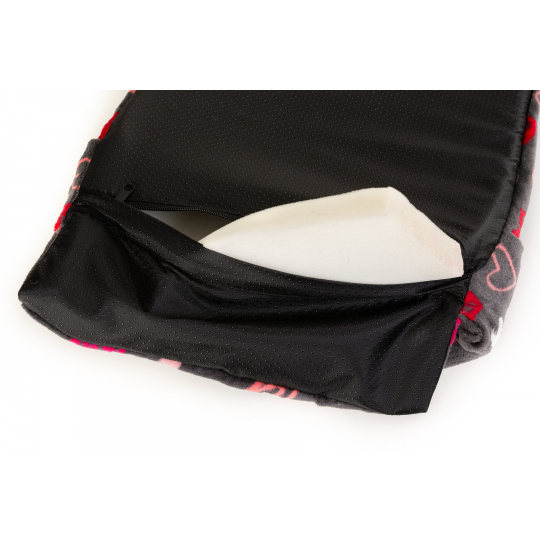 Cuccia - "pantofola" grigio/rosso cuori Dimensione del materasso: 58x40cm
