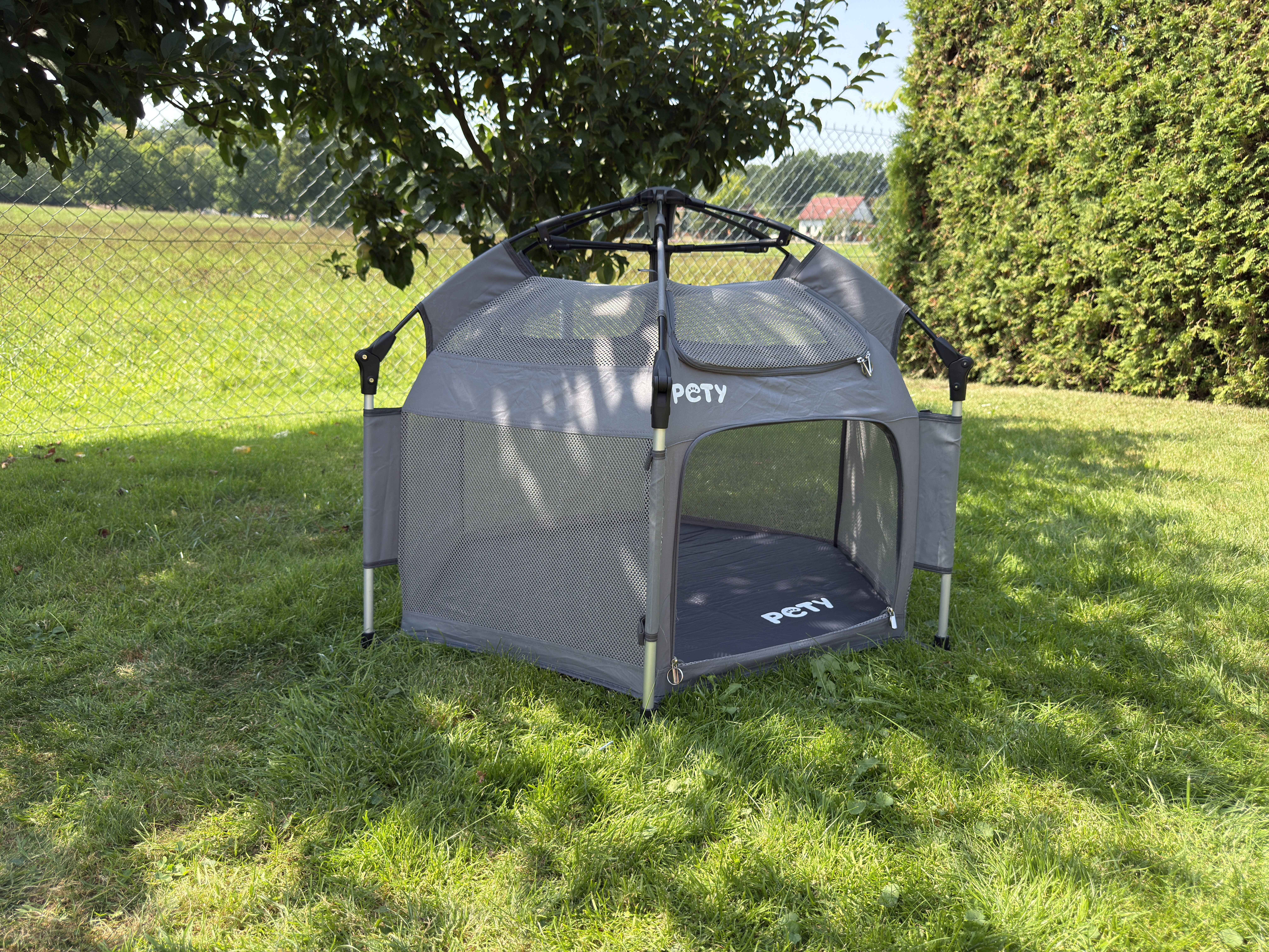 LEGGERO E MOBILE – Con il box portatile di PETY sarai sempre mobile. Il recinto mobile leggero per esterni (circa 2,8 kg) è perfetto per i viaggi, il campeggio e molto altro grazie al suo peso ridotto. Dimensioni 110cm larghezza e 80cm altezza. Il pacchetto include un materassino autogonfiabile, una copertura UV, picchetti per il fissaggio al suolo.