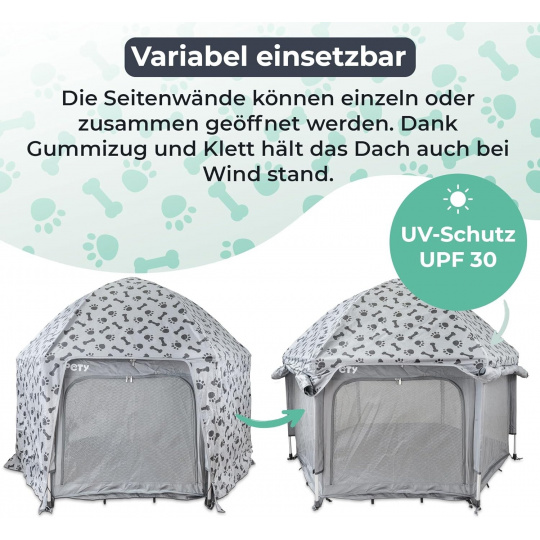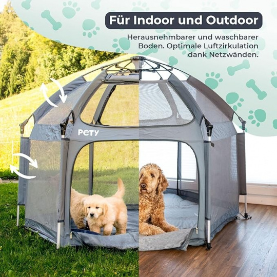 Per uso interno ed esterno: il recinto per animali domestici PETY è adatto per diversi usi e diversi animali domestici. La parte inferiore è rimovibile e lavabile grazie alla cerniera. Adatto anche per le razze grandi.
