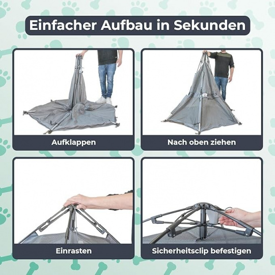Montaggio e smontaggio in pochi secondi: La cassa per cani può essere assemblata e smontata rapidamente e facilmente grazie alla tecnologia speciale. La clip di sicurezza garantisce la massima sicurezza per il tuo animale domestico.